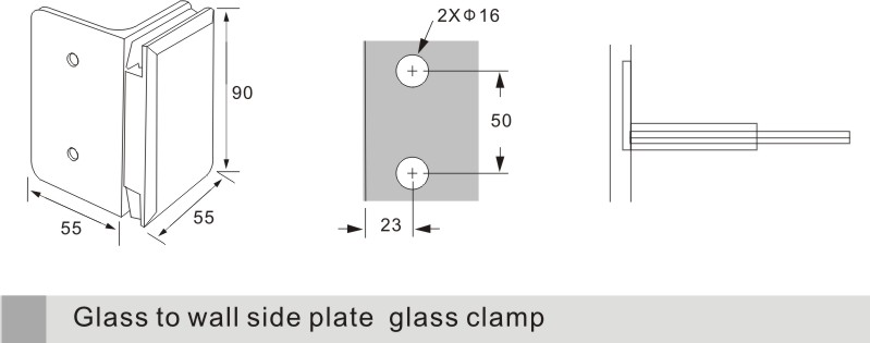 ● Glass to Wall 90°:6(1/4'')mm-10(3/8'')mm Glass